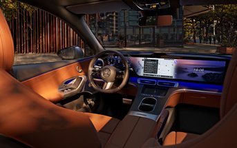 Genießen Sie visuelle Inszenierungen, beispielsweise wenn Sie die Temperatureinstellung ändern, Musik hören oder mit dem MBUX Sprach-Assistenten kommunizieren. Die Warnungen einiger Fahrassistenz- und Parksysteme werden ebenfalls durch die aktive Ambientebeleuchtung unterstützt. Die Beleuchtungsinszenierungen können mehrfarbig und animiert sein.